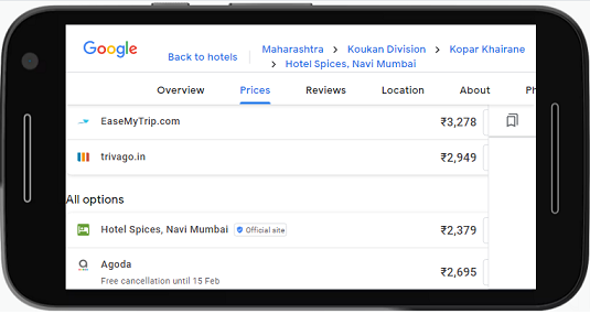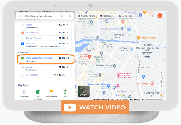 Once the hotel registers and update inventory hotel get displayed on Google as an Official website.